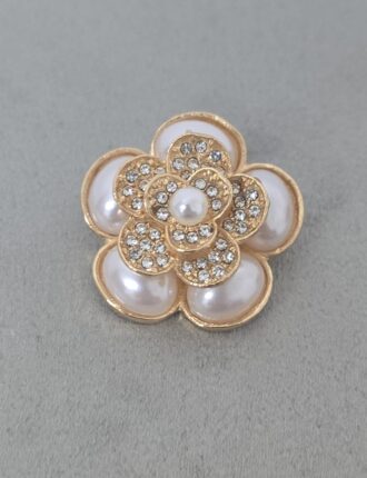 Broche Flor Pérolas e Strass