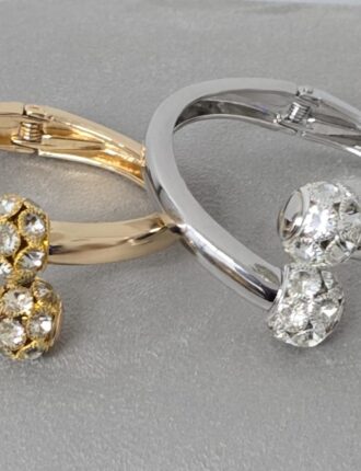 Material: Bijoux, Strass Transparentes em Fileiras, Pérolas Esféricas, Eixo de Mola em Aço Banhado