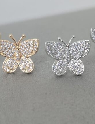 R$49,00Material: Semijoia, Micro Zircônias Transparentes Cravejadas, Tarracha Borboleta Tamanho: 1,5 cm x 1,3 cm Peso: 3 g (Par + Tarrachas) -
