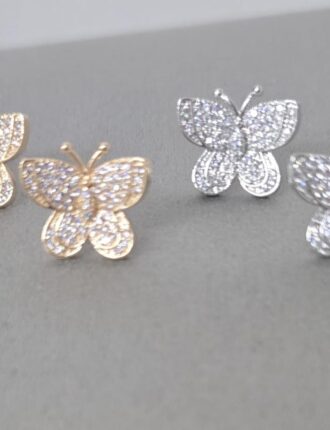R$49,00Material: Semijoia, Micro Zircônias Transparentes Cravejadas, Tarracha Borboleta Tamanho: 1,5 cm x 1,3 cm Peso: 3 g (Par + Tarrachas) -