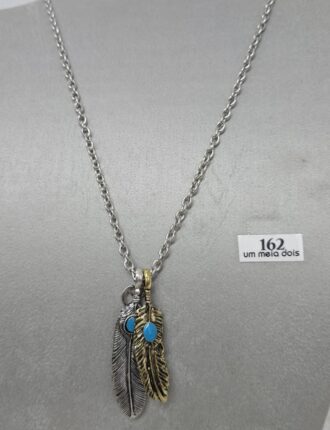 R$39,00Material: Bijoux, Corrente Elo Português, Fecho Lagosta, Extensor Corrente Elo Groumet, Resina Azul Tamanho: 65 cm + 7 cm Extensor | Penas: 5,5 cm - 6,5 cm x 1,5 cm Peso: 30 g -