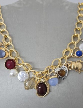 Colar Corrente Elo Duplo com Pingentes Mistos