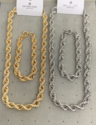 R$99,00 – R$169,00Material: Semijoia, Corrente em Elos Formato Serpentina, Fecho Bóia COLAR Tamanho: 34 cm | Espessura: 1 cm | Peso: 46 g PULSEIRA Tamanho: 20 cm | Espessura: 1 cm | Peso: 20 g -