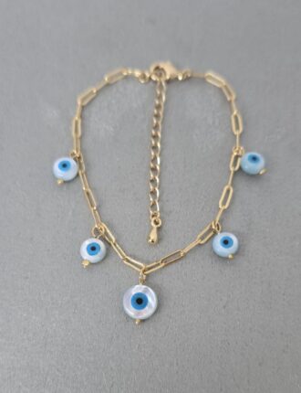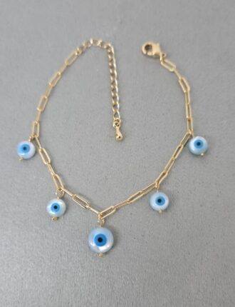 R$49,00Material: Semijoia, Corrente Elo Português Oval, Pingente Olho Grego em Madrepérola, Extensor Elo Groumet, Fecho Lagosta Tamanho: 15 cm + 5 Extensor Peso: 3 g -
