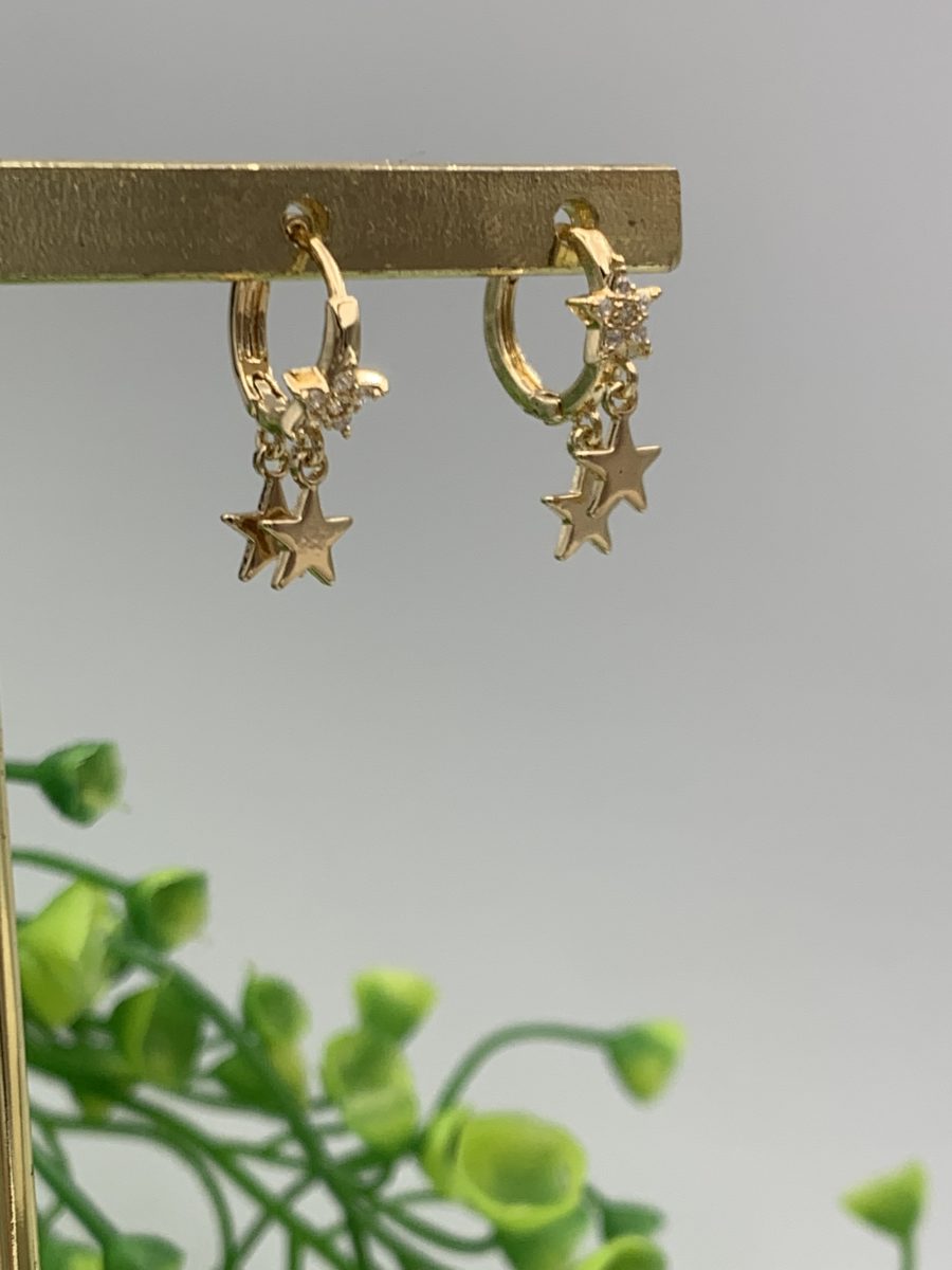 Material: Semijoia, Micro Zircônias Transparentes Cravejadas, Pingentes Estrela Chapas Lisas, Fecho Clique