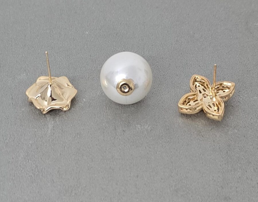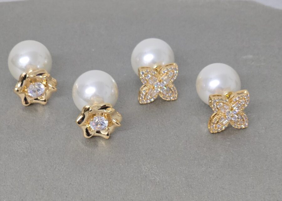 Brinco Zircônia e Cascata Micro Fios e Pérolas (Ear Cuff)