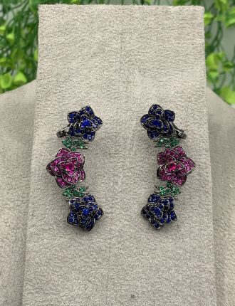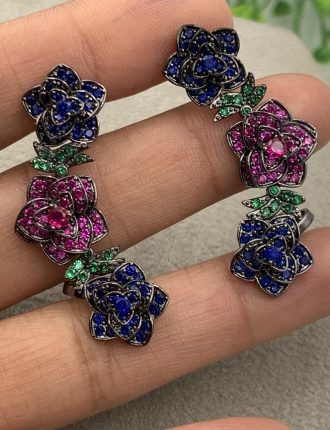 Brinco Ear Cuff 3 Flores Cravejadas (Festa)