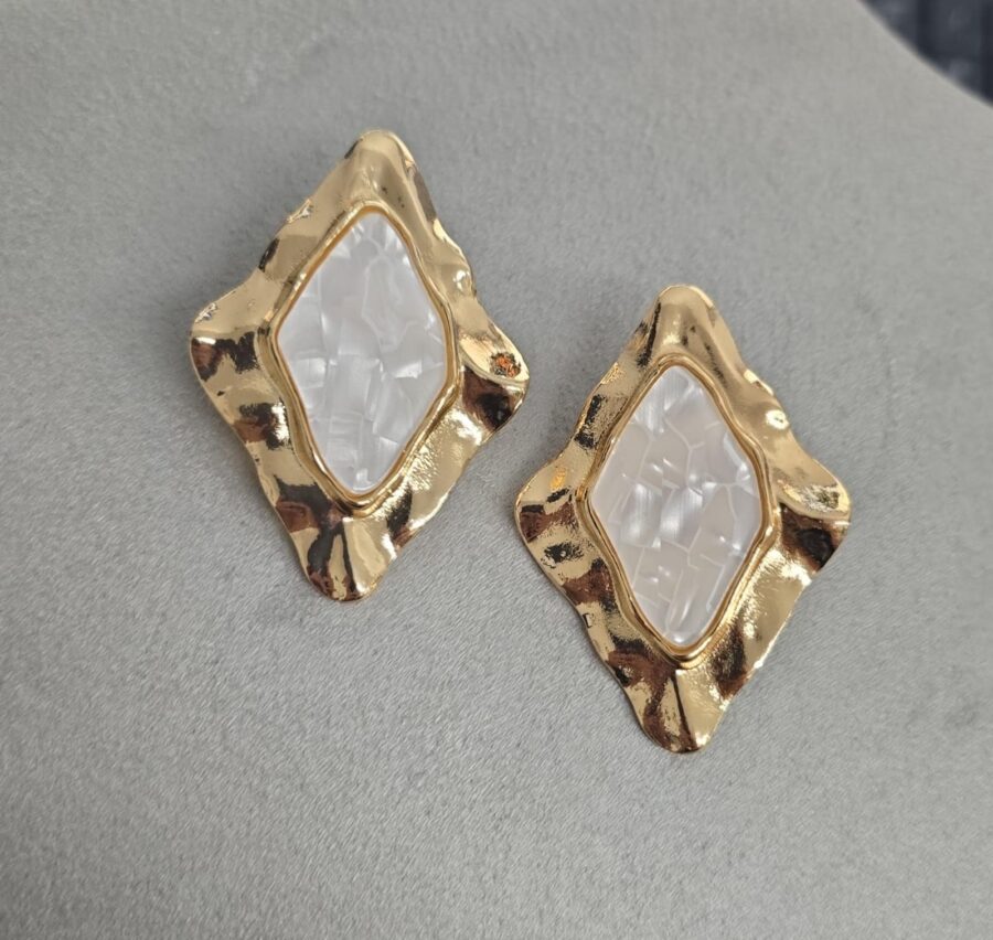 Material: Bijoux, Resina Acrílica Formato Losango Perolado, Tarracha Sutiã de Orelha