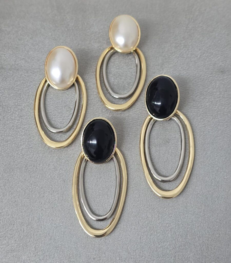 Brinco Oval Base e Aros – Banho Misto (Cores)