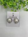 Brinco Pérola Brilhante em Semicírculo com Borda Cravejada