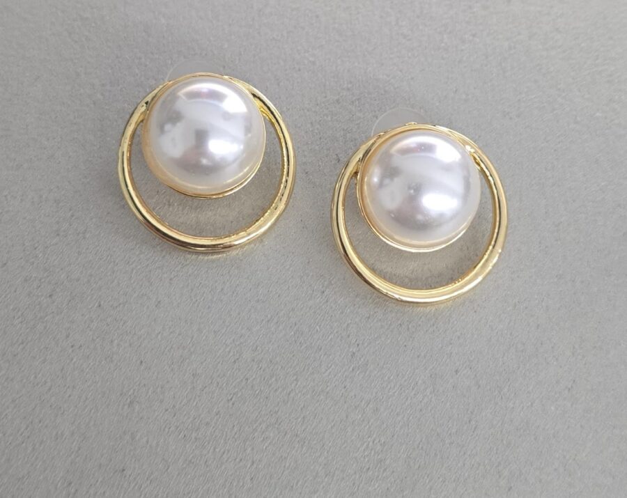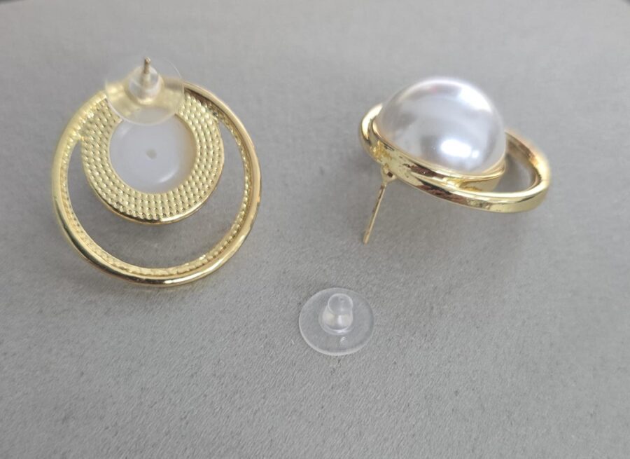 Material: Bijoux, Pérola Sintética em Semicírculo, Tarracha Silicone