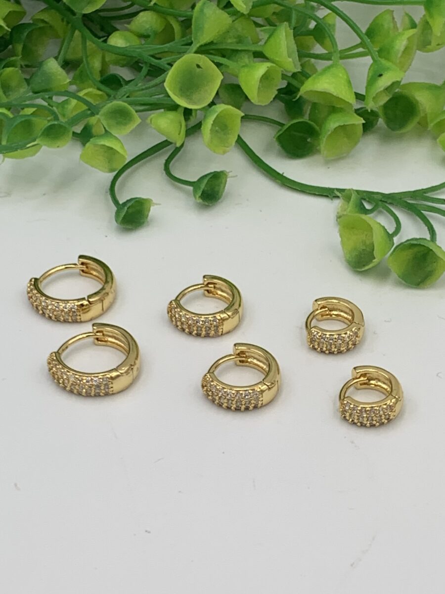 Categories: Brincos, Semijoias Tags: #argolas, #cravejadas, #semijoia, 3 fileiras, fechadas, trio