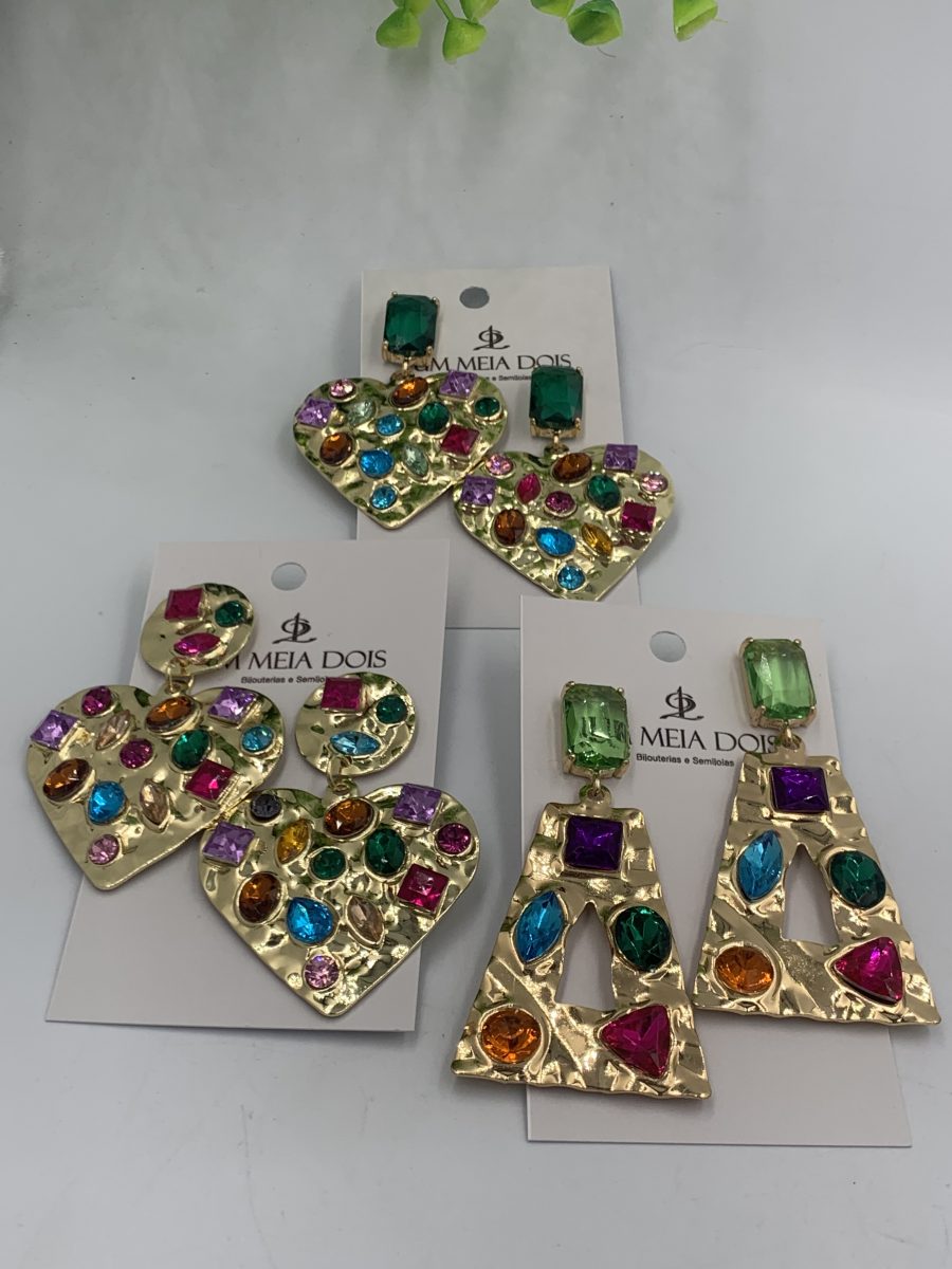 Category: OUTLET - PROMOÇÃO Tags: #colorido, #irregular, #retangulo, #strass, Bijoux, coração, linha mosaico, rainbow, trapézio