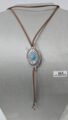Material: Bijoux, Fio Couro Marrom, Passador Metal com Pedra em Resina Turquesa, Ponteiras Metal