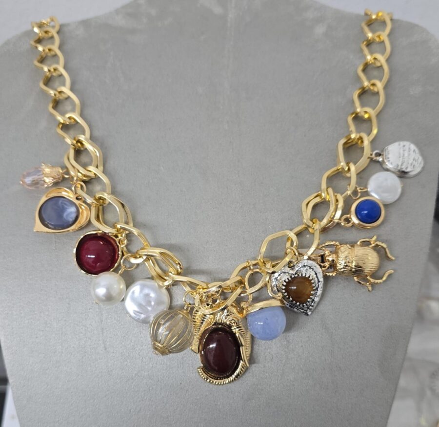Início Bijoux Colar Corrente Elo Duplo com Pingentes Mistos
