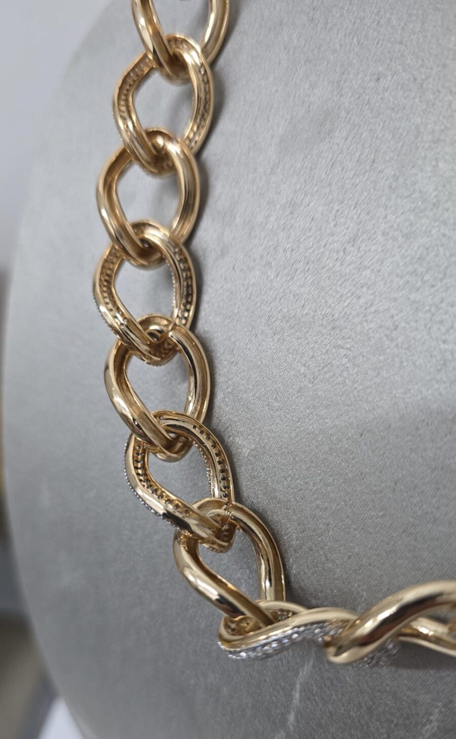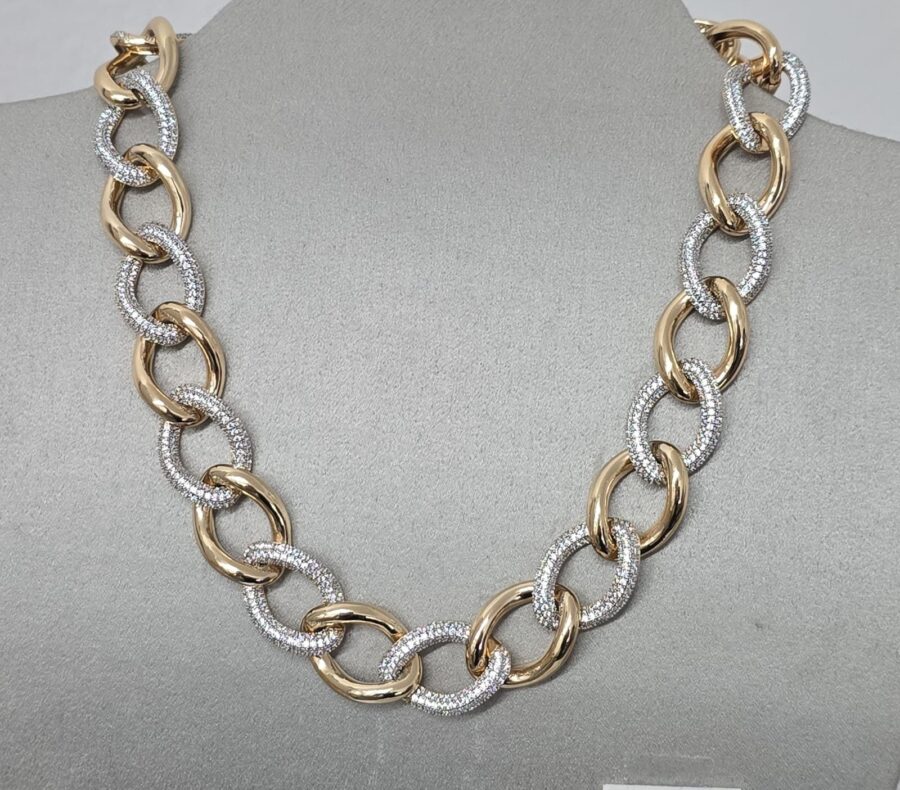 Colar Groumet Misto (Elos Lisos e Cravejados)