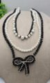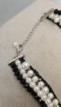 Material: Bijoux, Pérolas Esféricas Tamanhos, Renda em Tecido Preto, Cristais Pretos Lapidados, Fecho Lagosta, extensor Corrente Elo Groumet