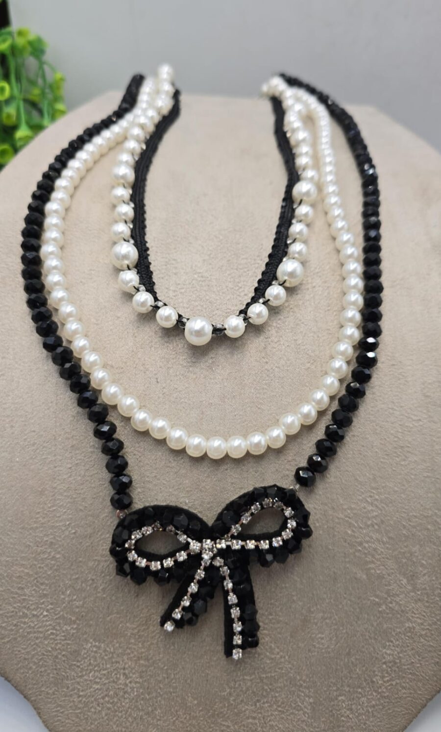 Colar Laço 3 Voltas – Renda, Pérolas e Cristais