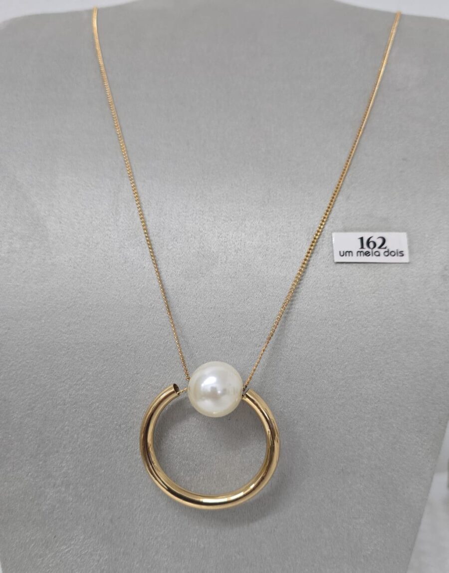 Material: Bijoux, Corrente Mini Elos, Pérola Esférica, Fecho Lagosta, Extensor Corrente Elo Groumet