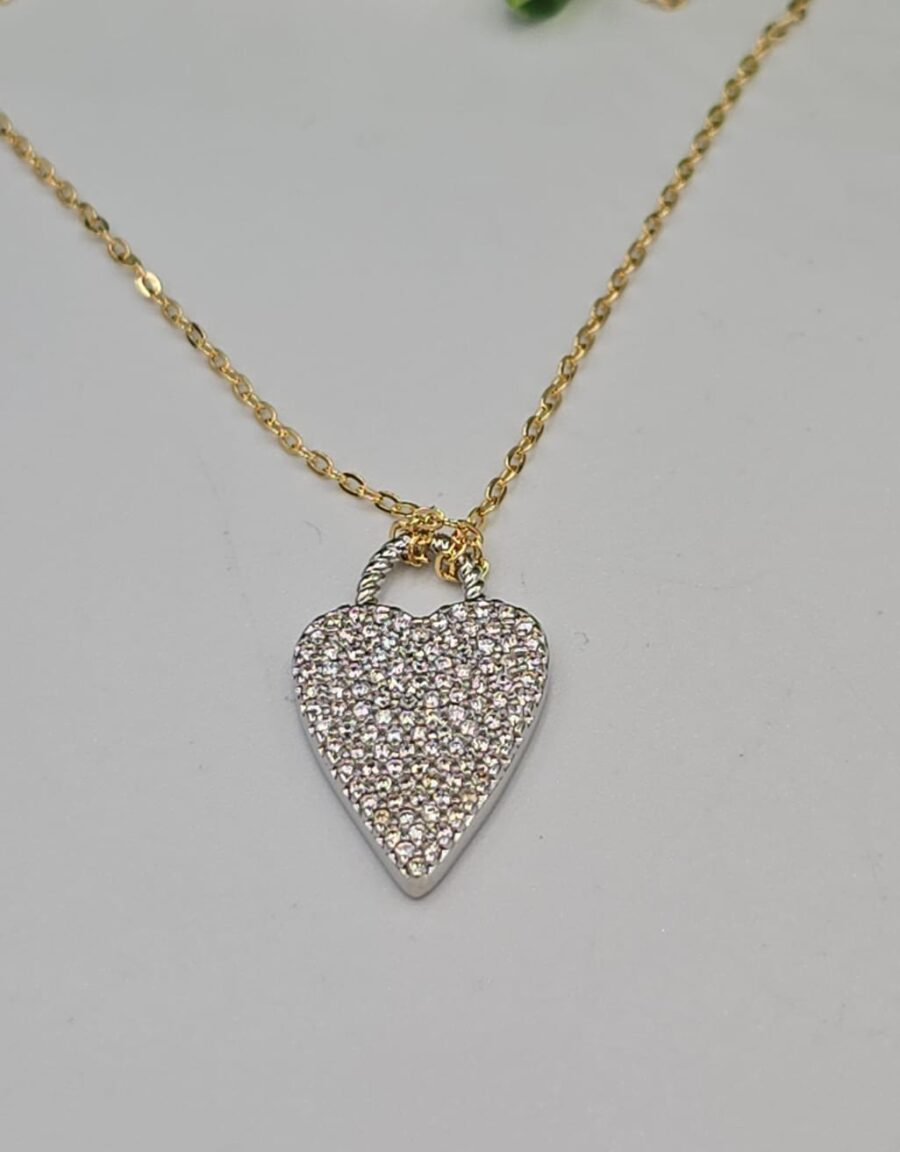 Material: Semijoia, Pingente Coração Cravejado com Zircônias Transparentes, Extensor Corrente Elo Groumet, Fecho Lagosta