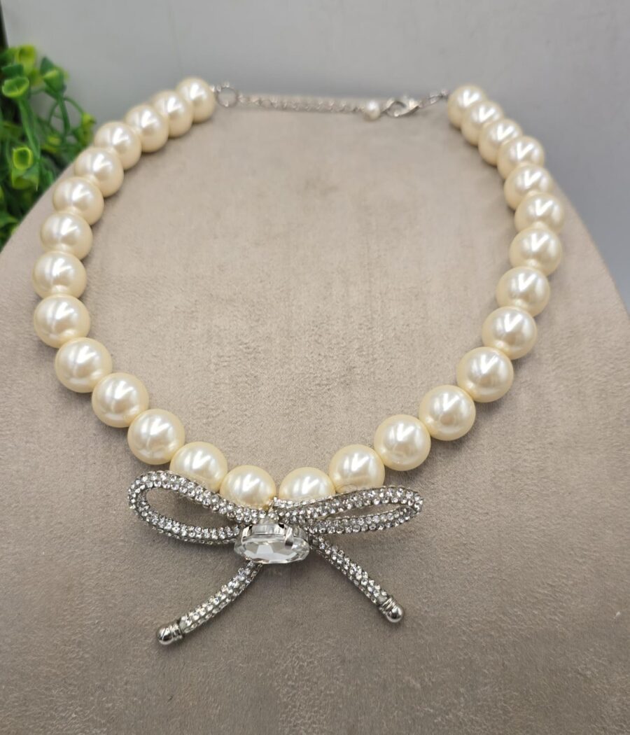 Colar Pérolas Big e Laço Strass