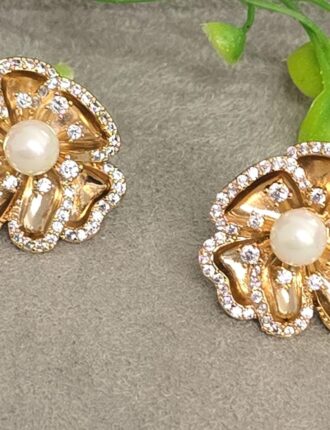 Brinco Flor Borda Cravejada e Miolo Pérola