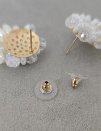 Material: Bijoux, Grãos de Pérolas, Resina Acrílica em Flores, Cristais Transparentes Tamanhos, Mini Miçangas Brancas, Base de Metal Banhado e Peças Fixadas em Fio de Nylon, Tarracha Sutiã de Orelha