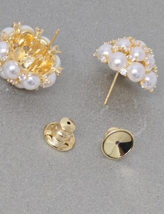 Material: Semijoia, Pérolas Esféricas Pequenas, Zircônias Transparentes, Tarracha Sutã de Orelha