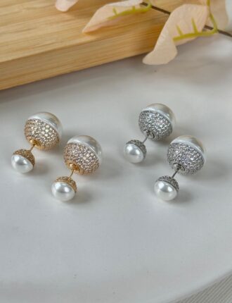 Brinco Esferas Pérola e Cravejado (Banhos)