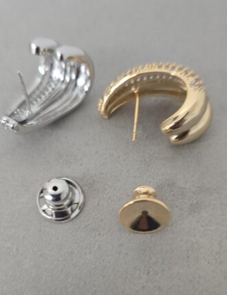 R$139,00Material: Semijoia, Mini Zircônias Transparentes Cravejadas, Tarracha Vírgula Tamanho: 2,5 cm x 1,2 cm x 0,4 cm Peso: 5 g (Par + Tarrachas) -
