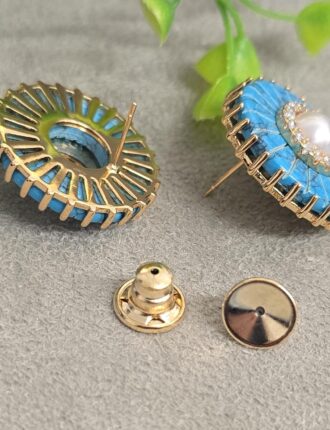 Brinco Disco Turqueza Miolo Pérola e Zircônias