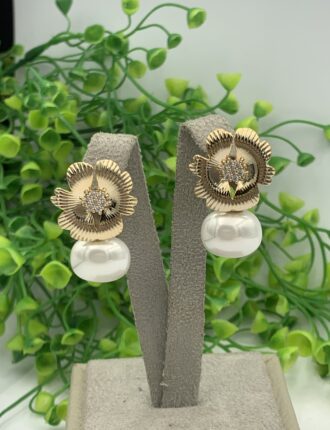 Brinco Flor Frisada e Pérola Shell
