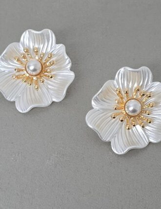 R$32,00Material: Bijoux, Resina Acrílica Perolada Frisada Formato Pétalas, Pérola Semicírculo, Tarracha Sutiã de Orelha Tamanho: 4 cm x 4,5 cm Peso: 15 g (Par + Tarrachas)