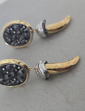 R$59,00Material: Bijoux, Strass Grafite Tamanhos, Tarracha Sutiã de Orelha Tamanho: 2 cm x 6 cm Peso: 23 g (Par + Tarrachas) -