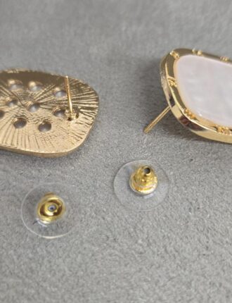 R$15,00Material: Bijoux, Resina Réplica de Madrepérola Formato Retângulo, Tarracha Sutiã de Orelha Tamanho: 2,5 cm x 2 cm Peso: 8 g (Par + Tarrachas)