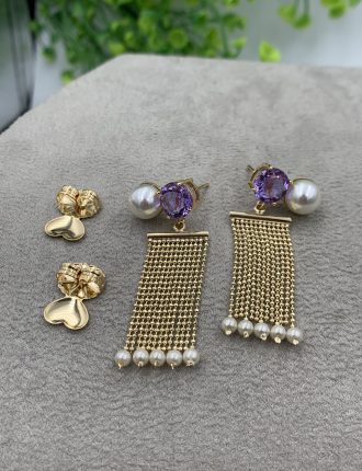 Brinco Zircônia e Cascata Micro Fios e Pérolas (Ear Cuff)