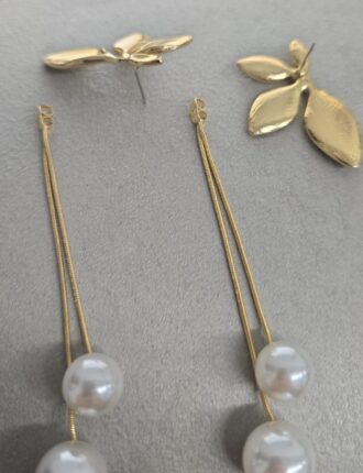 • Brinco Folhas e Pêndulo com Pérola