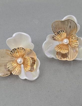 Brinco Flor Pétalas Mistas e Miolo Pérola