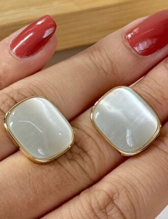 R$39,00Material: Semijoia, Pedra Pseudo Quartzo Perolada Retangular, Tarracha Bala Maior Tamanho: 1,7 cm x 1,5 cm Peso: 10.5 g (Par + Tarrachas) -