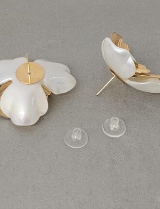 Brinco Flor Frisada em Resina Perolada