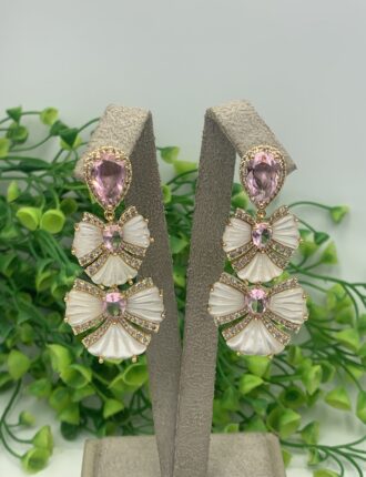 Brinco Cascata Floral em Madrepérolas e Zircônias Rosés