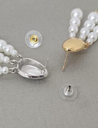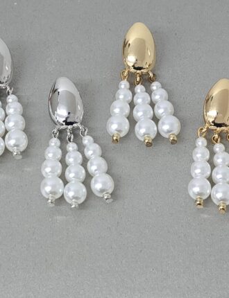 Brinco Oval Liso e Cascata Tripla Pérolas (Banhos)