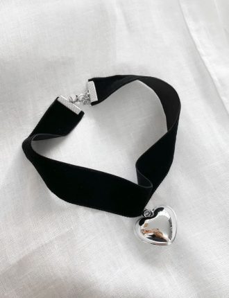 Material: Bijoux, Tecido Veludo Preto, Coração Banho Prateado, Extensor Corrente Elo Groumet, Fecho Lagosta
