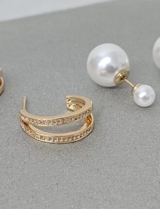 Argola Dupla Cravejada e Aplique Pérolas – 2 em 1